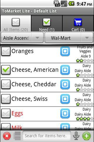 Voice Recognition – Search for items on your list and easily move it to need or cart.